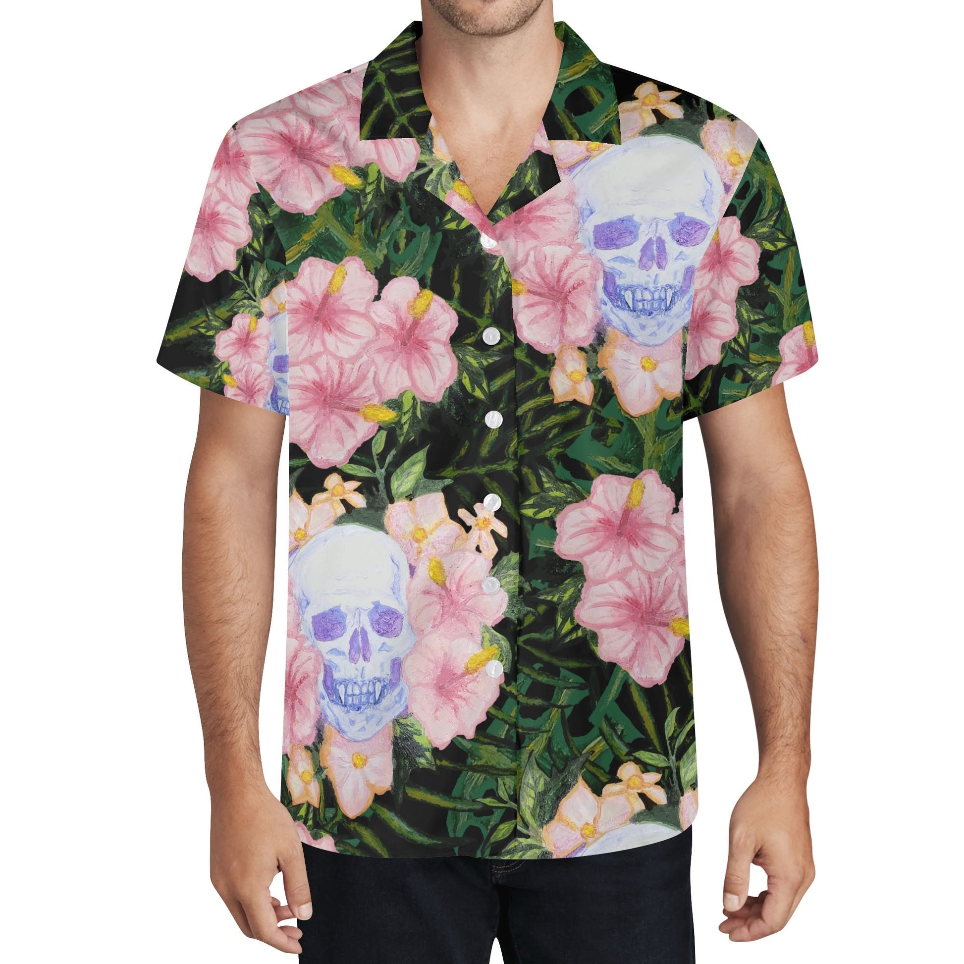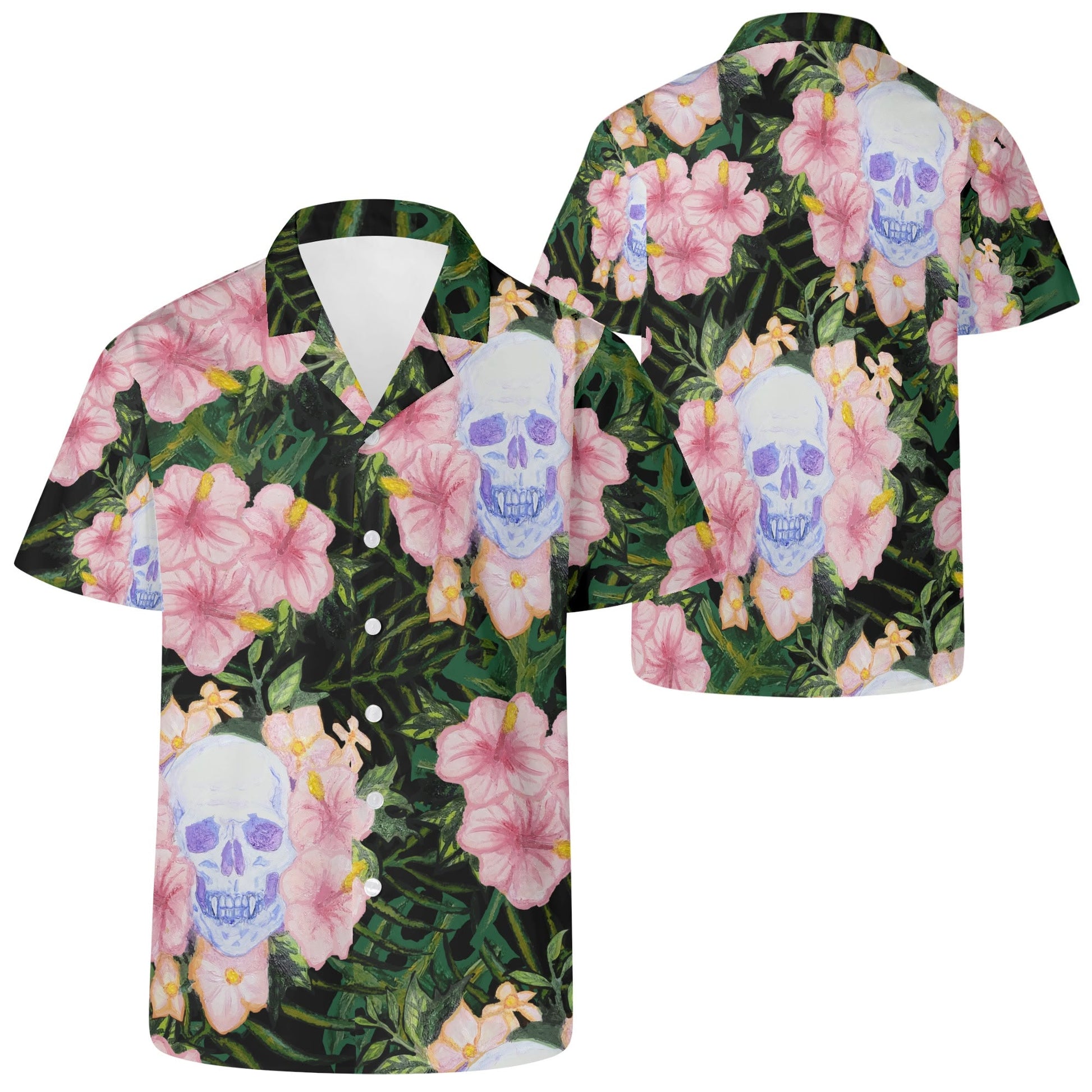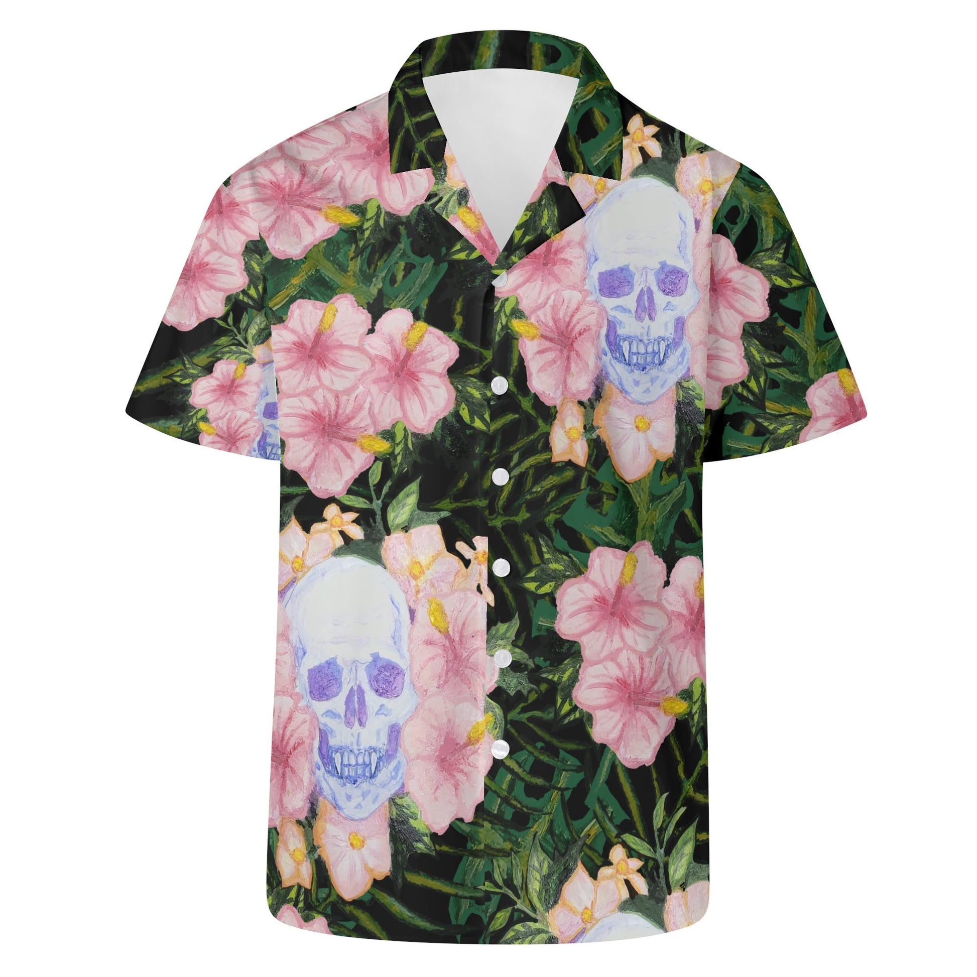 Skull and Hibiscus Casual Hawaiian Shirt